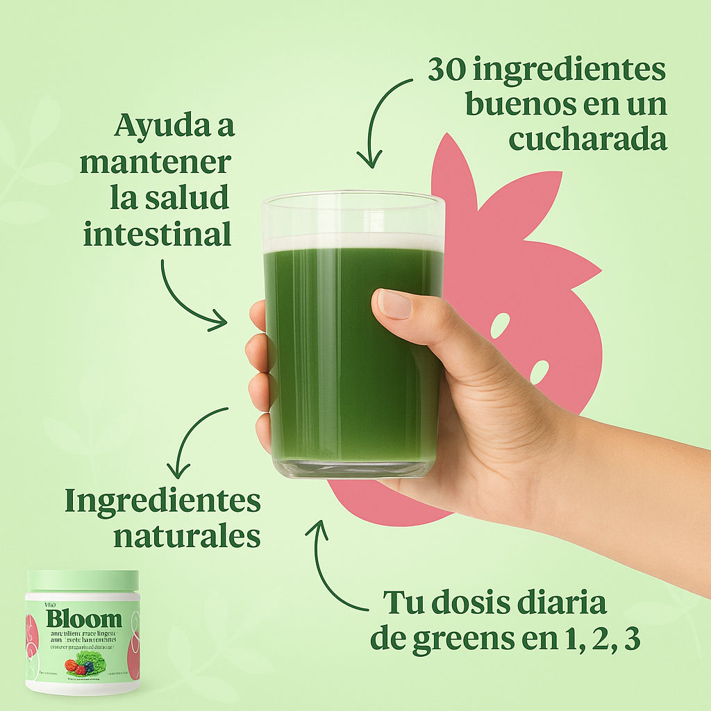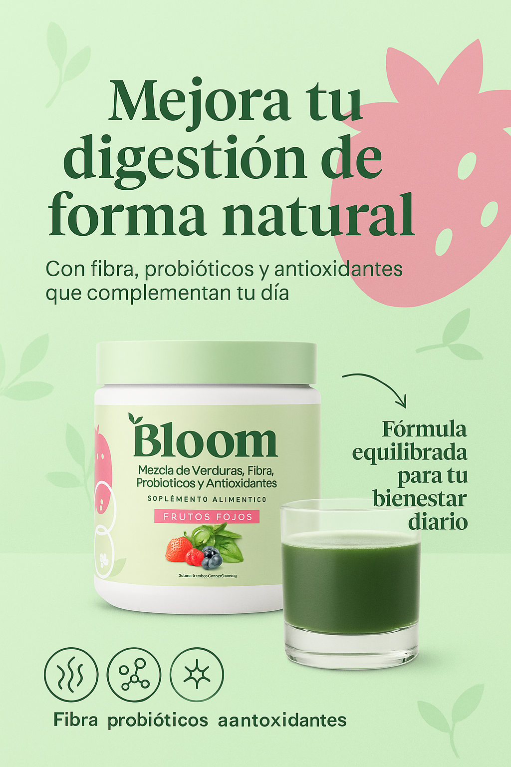 Si no tienes tiempo para jugos detox o dietas complicadas, Bloom es para ti. ⏳💚 Un scoop al día, mezclar y listo. Te ayuda a reducir hinchazón, mejorar tu digestión y sentirte ligera sin esfuerzo. Perfecto para quienes viven con prisas. ✨ ¡Resultado real + rutina fácil!