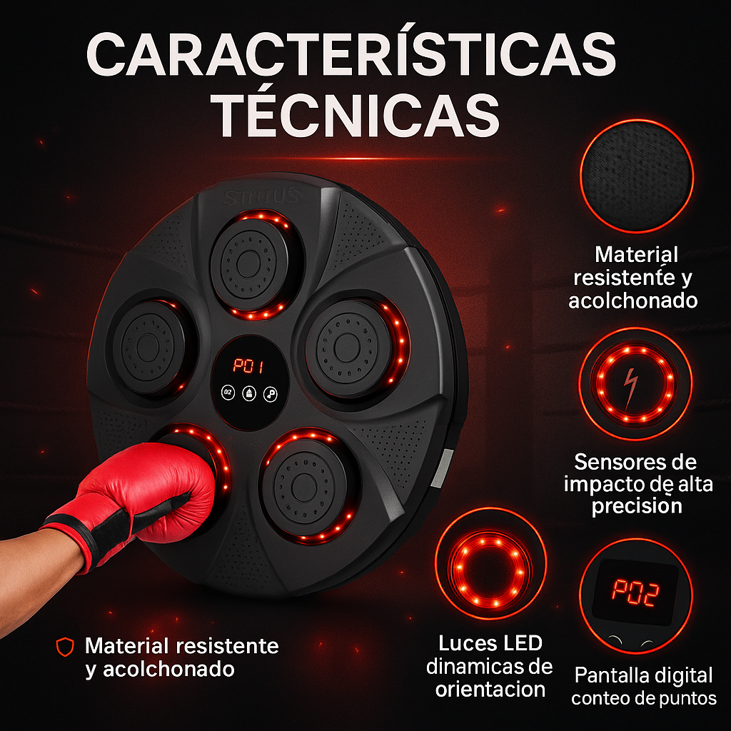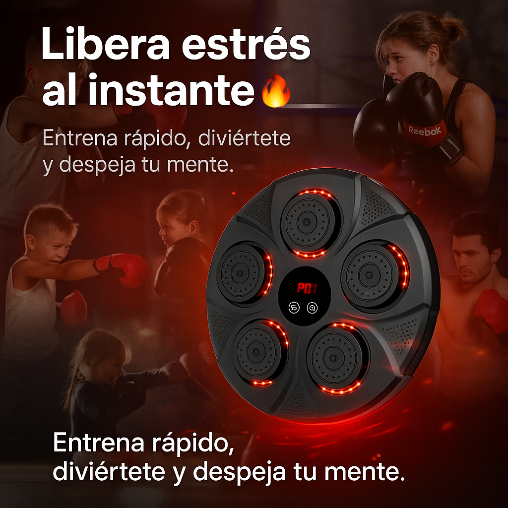 El PunchPad Pro detecta cada golpe en sus puntos acolchonados y activa luces que indican dónde golpear. La pantalla central registra tu puntaje según la velocidad y precisión. Es un entrenamiento divertido que mejora reflejos, coordinación y tiempo de reacción mientras juegas.