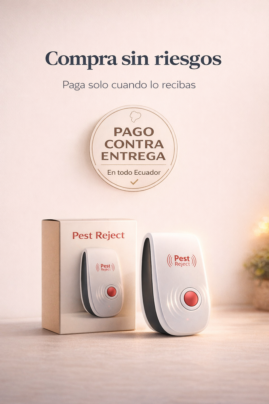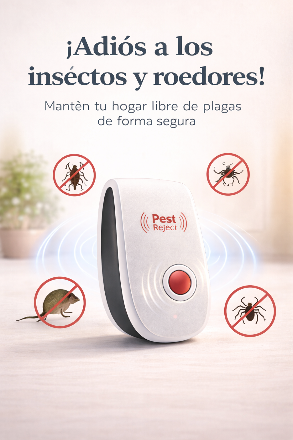Este repelente ultrasónico trabaja por ti las 24 horas, creando un ambiente incómodo para las plagas sin usar químicos ni trampas. Solo con conectarlo, empiezas a recuperar la tranquilidad de tu hogar, manteniendo cada espacio limpio, protegido y en paz.